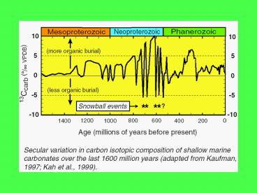 • 2.4 Ga Huronian Glaciation immediately preceded