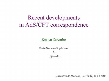 Title: Recent developments in AdSCFT correspondence
