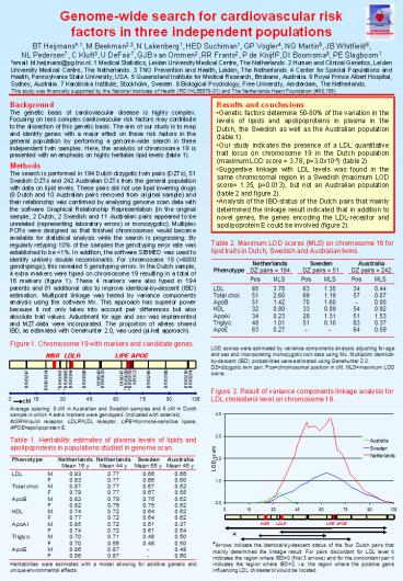 p3.0x10-5) (table 2). - Suggestive linkage with LDL levels was found in