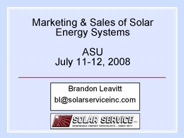 1Marketing Sales of Solar Energy
