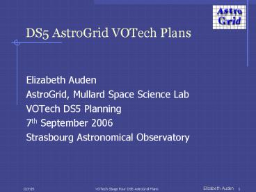 DS5 AstroGrid VOTech Plans PowerPoint PPT Presentation
