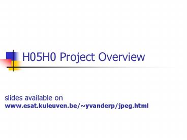 H05H0 Project Overview PowerPoint PPT Presentation