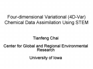 Title: Fourdimensional Variational 4DVar Chemical Data Assimilation Using STEM