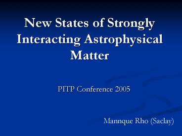 Title: New States of Strongly Interacting Astrophysical Matter