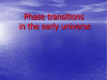 conditions after phase transition - In thermal equilibrium only a few quantities like