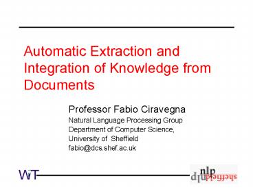 Automatic Extraction and Integration of Knowledge from Documents PowerPoint PPT Presentation