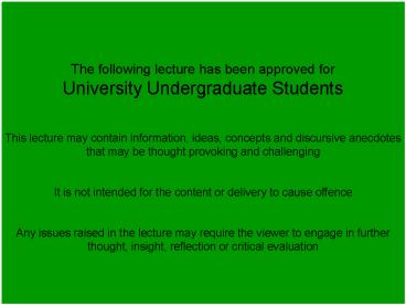 University Undergraduate Students This lecture