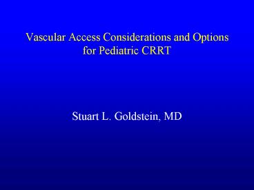 Title: Vascular Access Considerations and Options for Pediatric CRRT