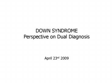 <Notice: Removed> DOWN SYNDROME Perspective on Dual Diagnosis April 23rd 2009 PowerPoint PPT Presentation