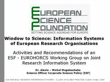 Dr. Alexis Michel Mugabushaka Science Officer