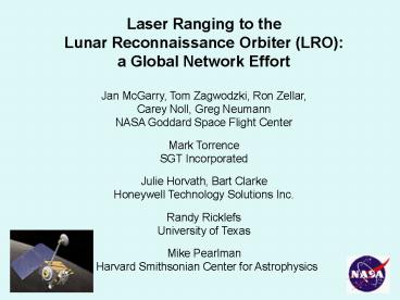 (LRO) a Global Network Effort Jan McGarry, Tom