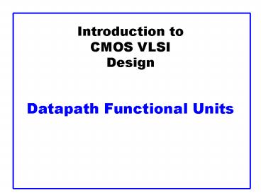Introduction to CMOS VLSI Design Datapath Functional Units PowerPoint PPT Presentation