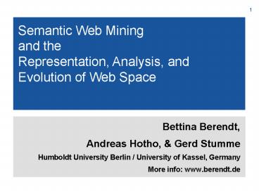 1Semantic Web Mining and the Representation,
