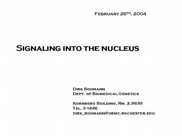 Dirk Bohmann Dept. of Biomedical