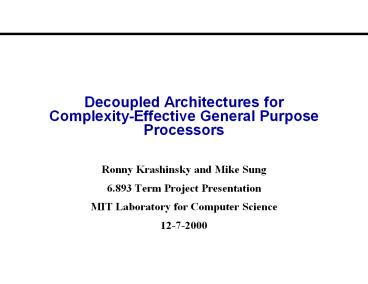 Title: Decoupled Architectures for Complexity-Effective General Purpose Processors