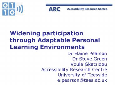 Widening participation through Adaptable Personal Learning Environments PowerPoint PPT Presentation
