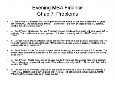 Title: Evening MBA Finance Chap 7 Problems