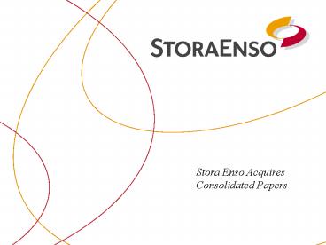 consolidationof the global forest industry - Positions Stora Enso as a market leader in high