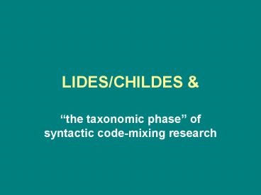 LIDES/CHILDES PowerPoint PPT Presentation