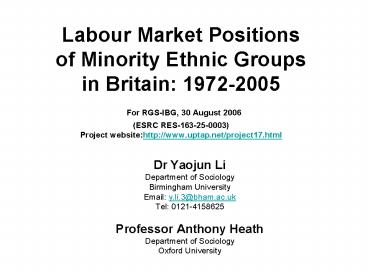commissioned by DTI and RSS. - Li, Y. (2005) Exploring income differentials a