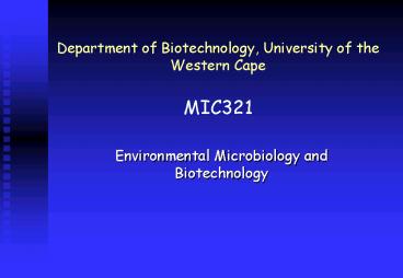 Title: Department of Biotechnology, University of the Western Cape MIC321