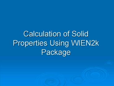 Calculation of Solid Properties Using WIEN2k Package PowerPoint PPT Presentation