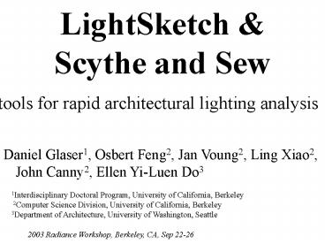 2003 Radiance Workshop, Berkeley, CA, Sep 22-26