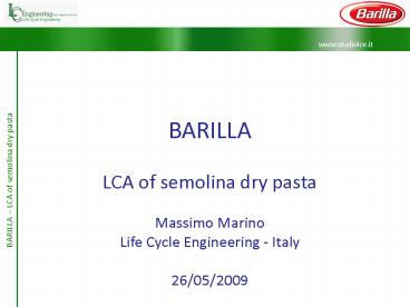 71 BARILLA GROUP AND LIFE CYCLE THINKING