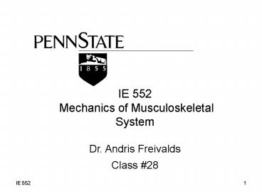 IE 552 Mechanics of Musculoskeletal System Dr.