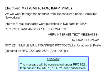 <Notice: Removed> Electronic Mail (SMTP, POP, IMAP, MIME) PowerPoint PPT Presentation
