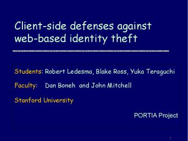 Title: Client-side defenses against web-based identity theft