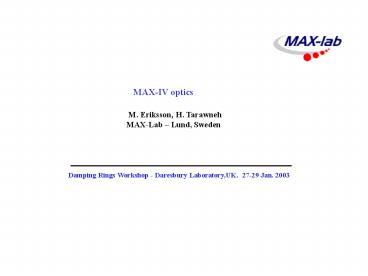 Damping Rings Workshop - Daresbury Laboratory,UK.