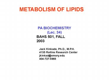 PA BIOCHEMISTRY (Lec. 34) BAHS 501, FALL 2003