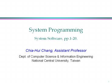 System Programming System Software, pp.1-20. PowerPoint PPT Presentation