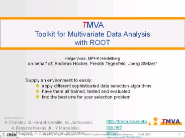<Notice: Removed> TMVA Toolkit for Multivariate Data Analysis PowerPoint PPT Presentation