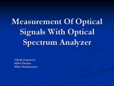 Measurement Of Optical Signals With Optical Spectrum Analyzer PowerPoint PPT Presentation