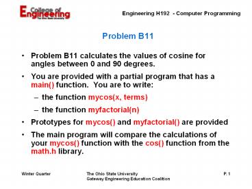 • Problem B11 calculates the values of cosine for