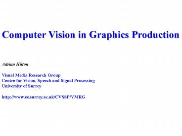 <Notice: Removed> Computer Vision in Graphics Production PowerPoint PPT Presentation