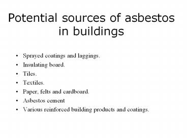 Potential sources of asbestos in buildings PowerPoint PPT Presentation