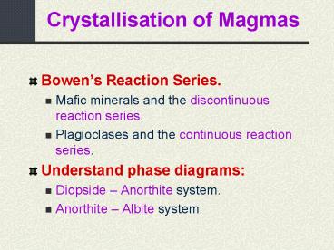 Crystallisation of Magmas PowerPoint PPT Presentation