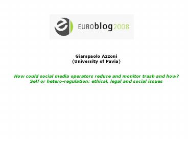 Giampaolo Azzoni (University of Pavia)      How