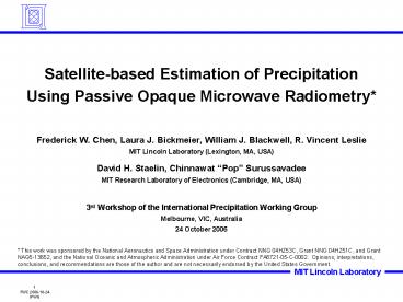 Title: Satellitebased Estimation of Precipitation Using Passive Opaque Microwave Radiometry