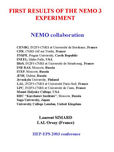 1FIRST RESULTS OF THE NEMO 3 EXPERIMENT