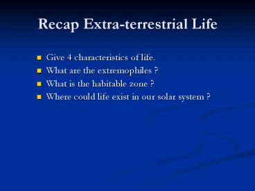 Recap Extraterrestrial Life PowerPoint PPT Presentation
