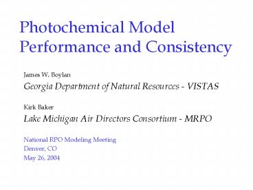 Photochemical Model Performance and Consistency