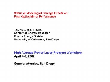 mirror and beam performance. - (2) Provide analysis of laser-target