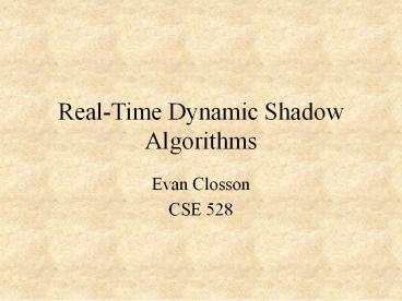 <Notice: Removed> Real-Time Dynamic Shadow Algorithms PowerPoint PPT Presentation