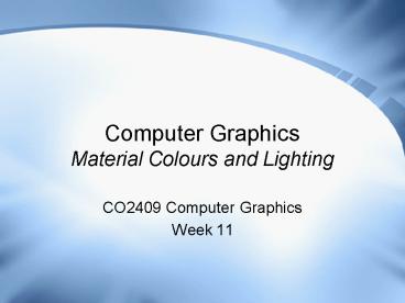 Computer Graphics Material Colours and Lighting PowerPoint PPT Presentation