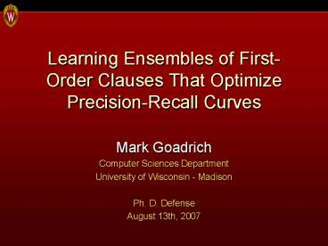 <Notice: Removed> Learning Ensembles of FirstOrder Clauses That Optimize PrecisionRecall Curves PowerPoint PPT Presentation