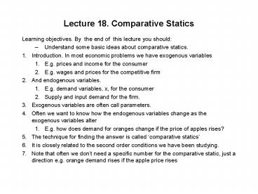 variables change as the exogenous variables alter - E.g. how does demand for oranges change if the